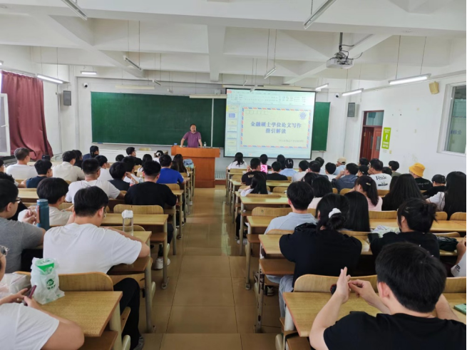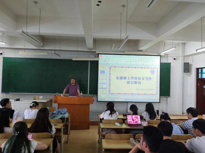 哈尔滨商业大学金融学院于2024年6月20日晚上6点30分开始在主楼0715教室举办了一场主题为"金融硕士学位论文写作指引解读”的学术讲座,主讲人为金融学院张德华教授。