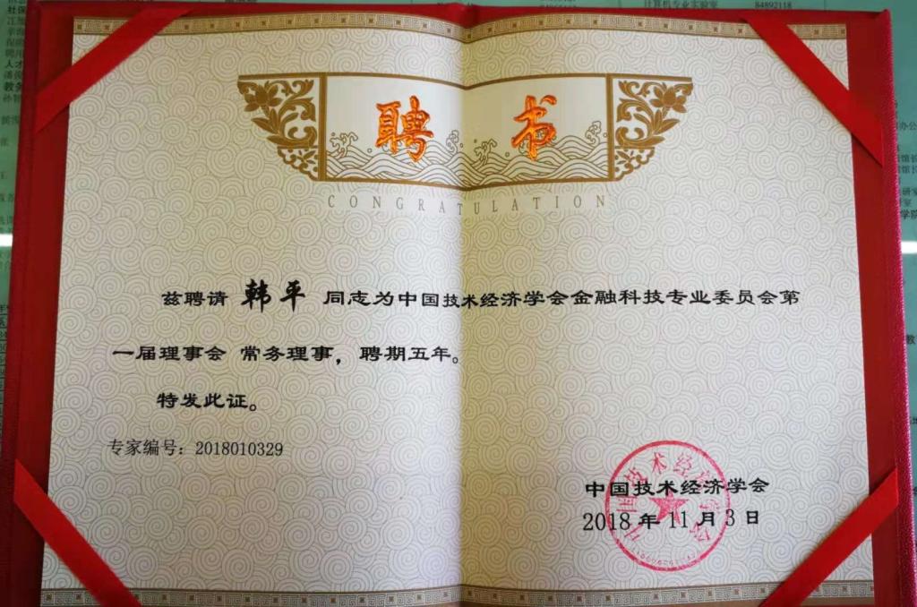 另外,11月2日-3日,中国技术经济学会、河北金融学院、西南财经大学联合举办的中国技术经济学会金融科技专业委员会成立大会暨金融科技创新及金融人才培养论坛在北京新疆大厦成功举行。中国技术经济学会理事长李平,河北金融学院校长杨兆廷,天津财经大学校长刘金兰,东北财经大学原党委书记、海南研究院执行院长都本伟,九江学院副校长王万山,中南财经政法大学校长助理邹秉国以及来自各高校、科研机构、金融行业、科技企业的130余名理事代表参会。我院院长韩平教授当选为该学会常务理事。中国技术经济学会是中国科协的组成部分,属于国家一级学会,金融科技专业委员会是隶属于中国技术经济学会的非营利性国家二级学术性团体。金融科技专业委员会将重点打造金融科技学术交流平台、金融科技人才培养平台、校企合作产教融合平台、科技产业与金融行业融合平台、金融科技成果转化平台、金融科技宣传平台,从而在中国金融科技领域发挥战略研究、政策建言、人才培养、服务雄安、舆论引导的重要作用。