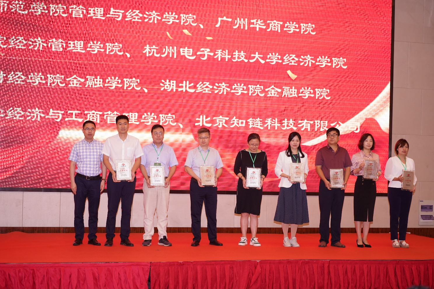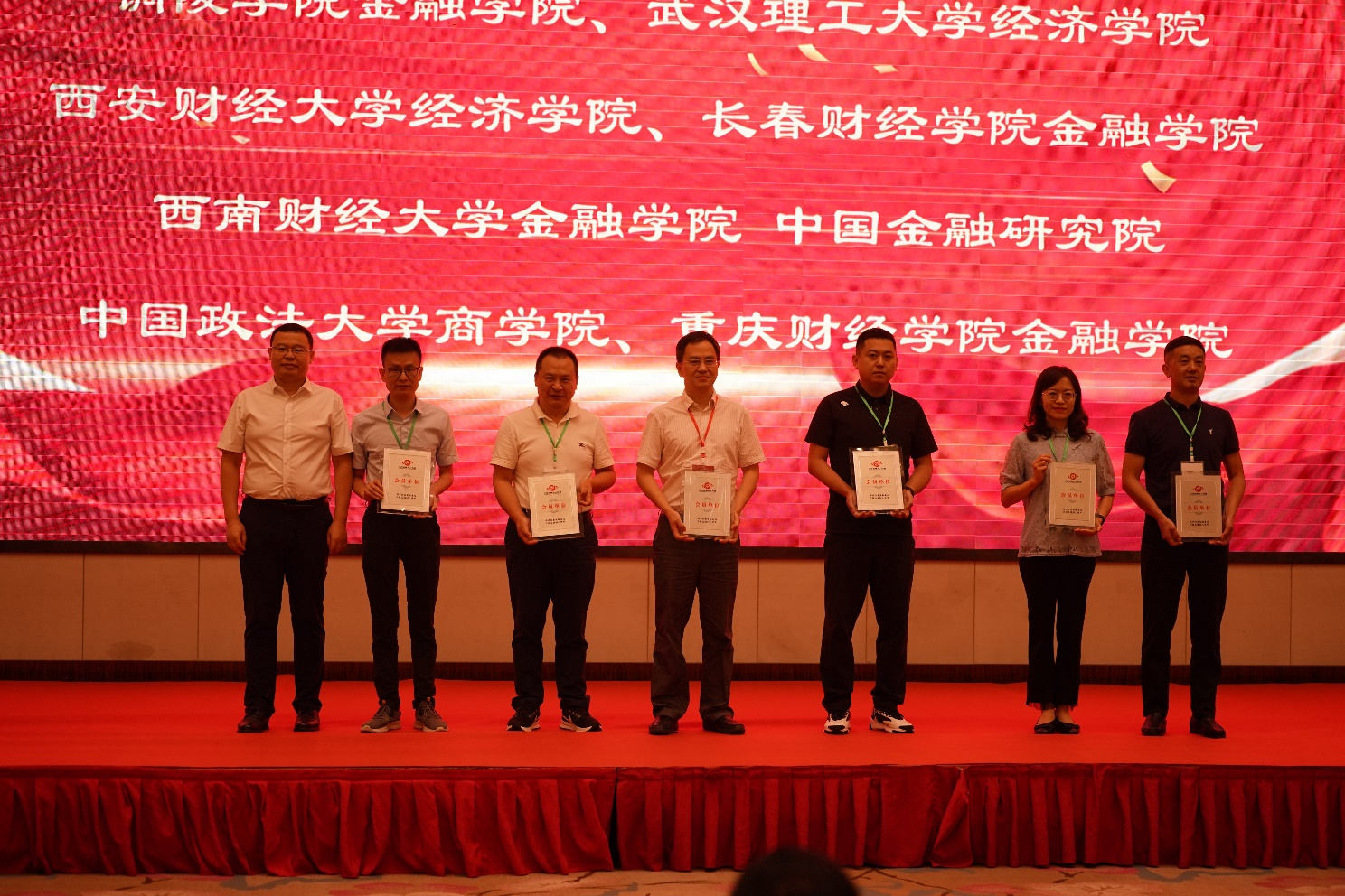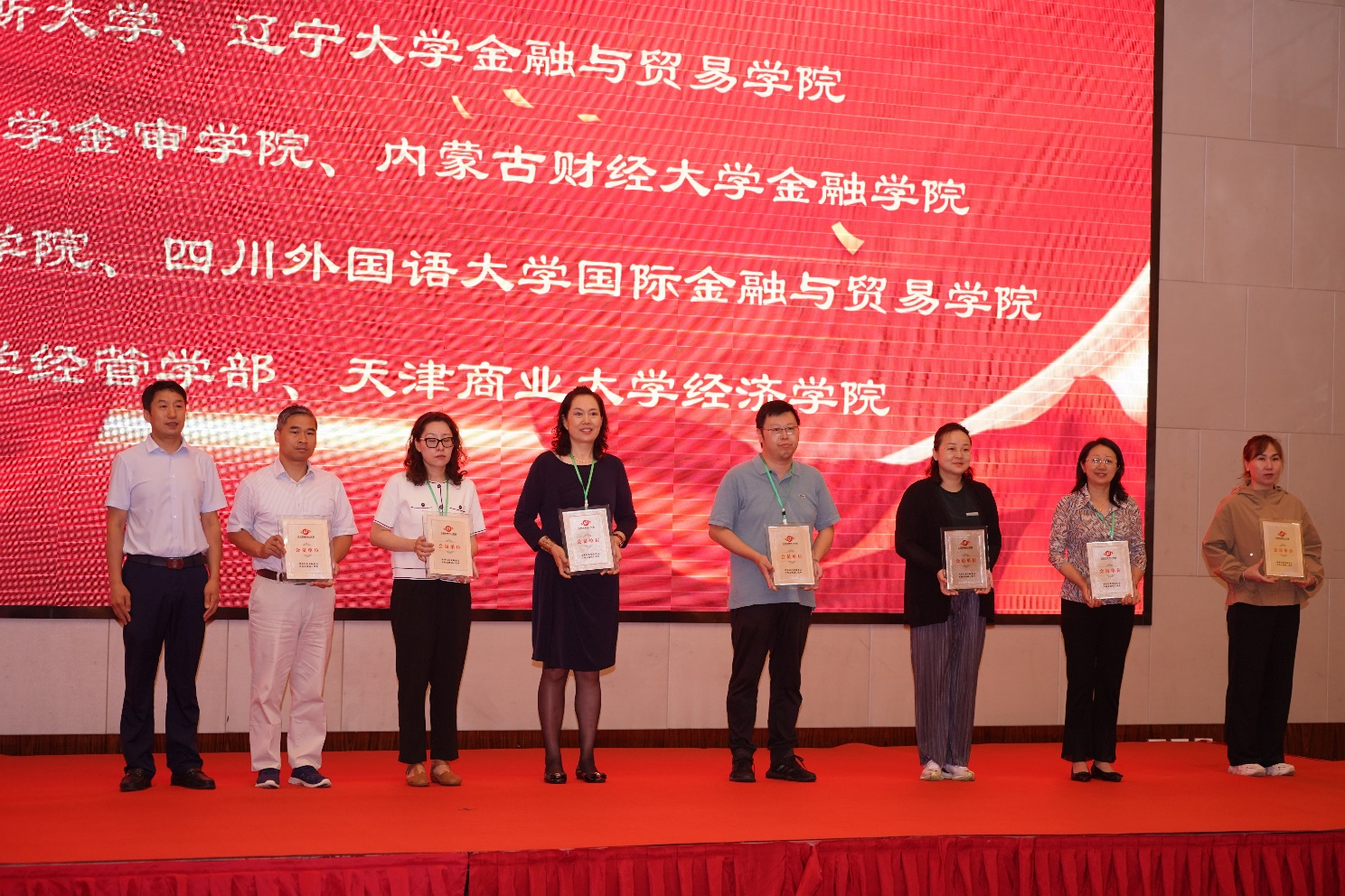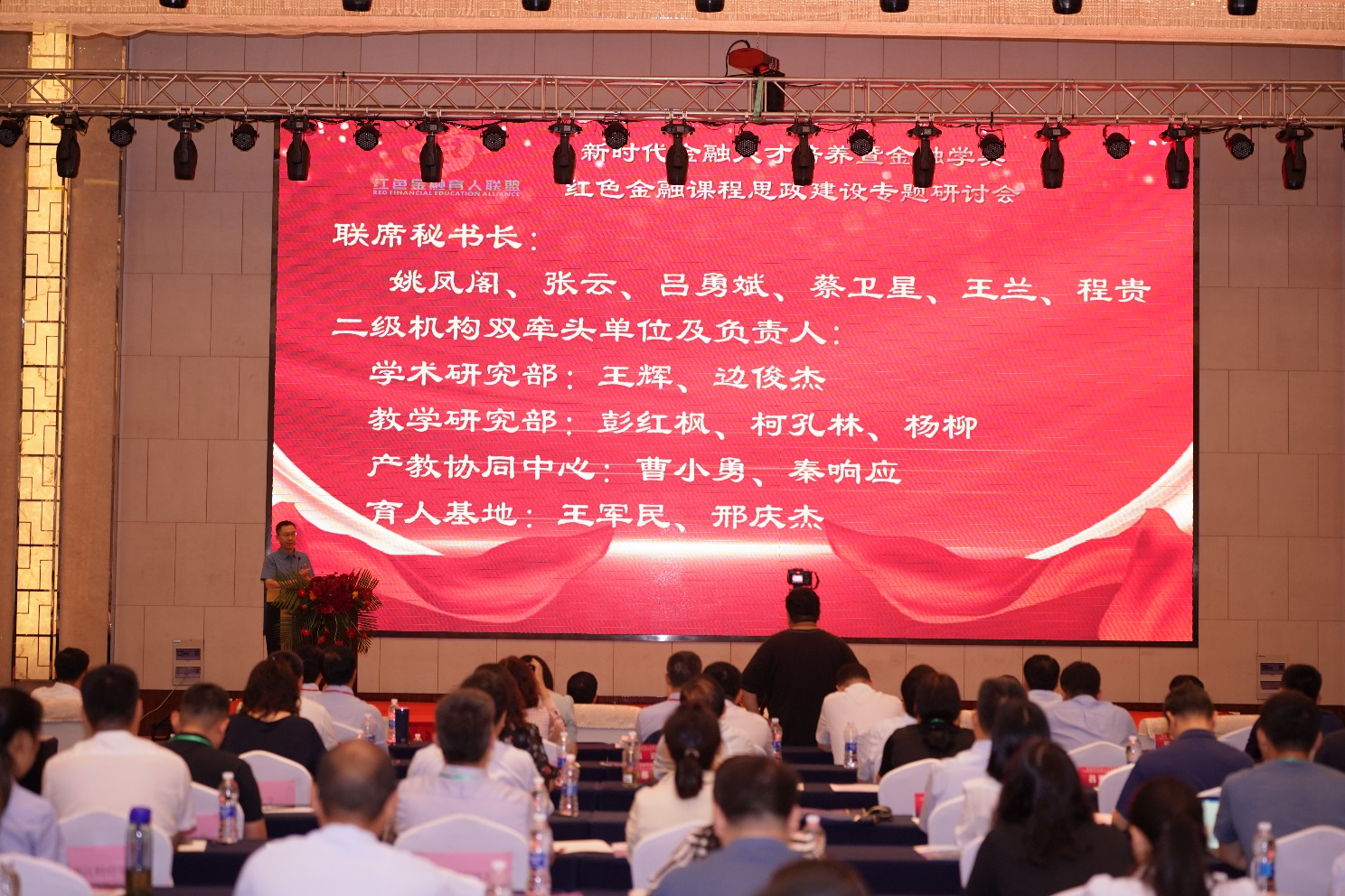安徽财经大学校长朱红军、哈尔滨商业大学副校长李景义、哈尔滨商业大学副校长赵大伟为23家申请加入红色金融育人联盟的会员单位授牌。北京联合大学应用科技学院院长张峰宣读了联盟机构名单。