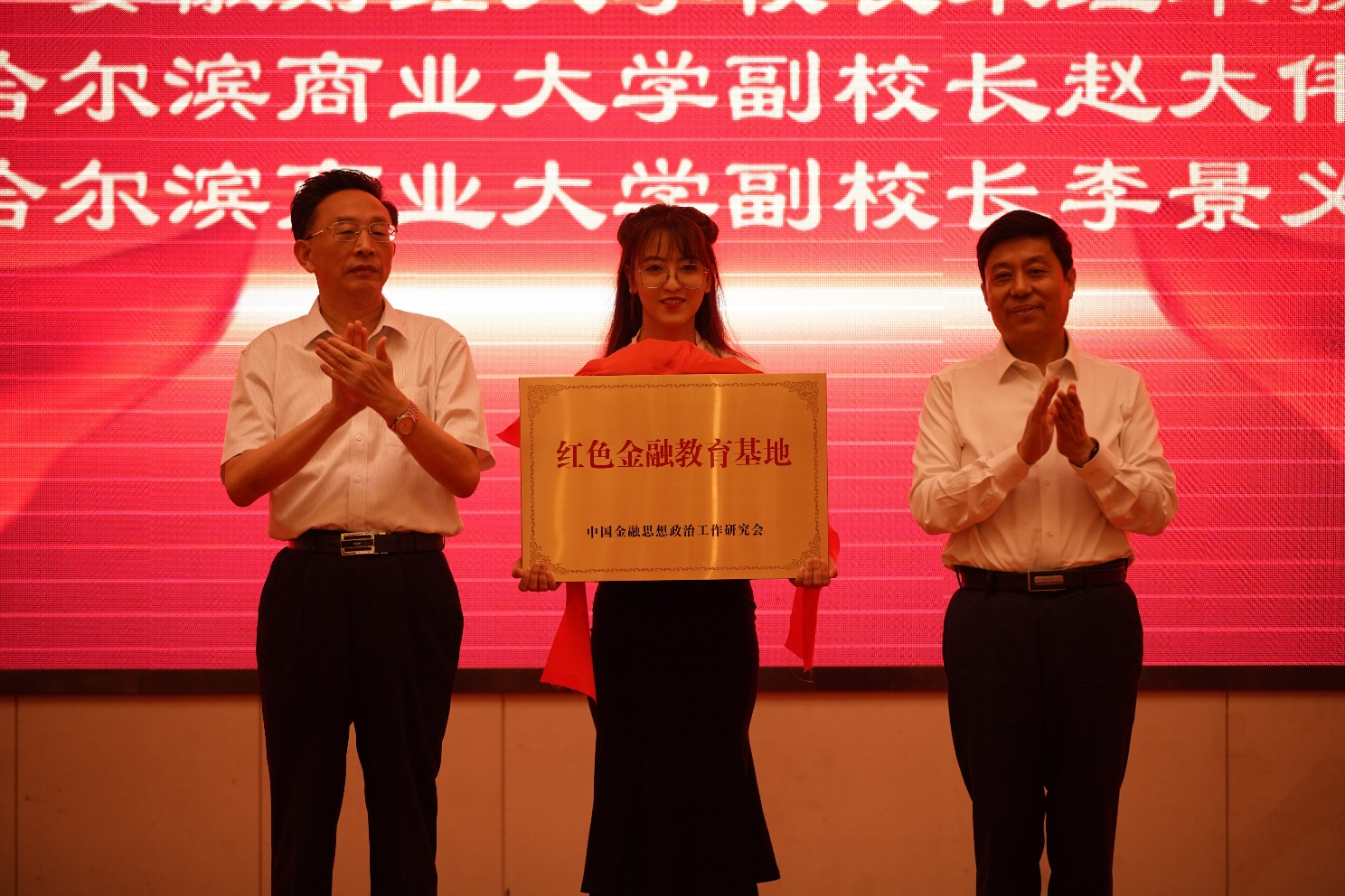 哈尔滨商业大学金融学院获批为“红色金融教育基地”。研讨会现场,中国金融思想政治工作研究会副会长兼秘书长濮旭、哈尔滨商业大学党委书记孙先民共同完成了揭牌仪式。