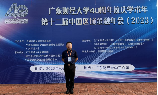 2023年4月21-22日,第十二届中国区域金融年会于广东财经大学(广东省广州市)召开。来自全国80多所高校的近百位作者参加了本次会议,深入探讨区域金融如何有效支持区域高质量发展的重大议题,有助于深刻把握区域金融发展的新趋势、新机遇和新挑战,为贯彻落实党的二十大精神和党中央决策部署做出了积极贡献。我院金融学院姚凤阁院长参加了此次会议。
