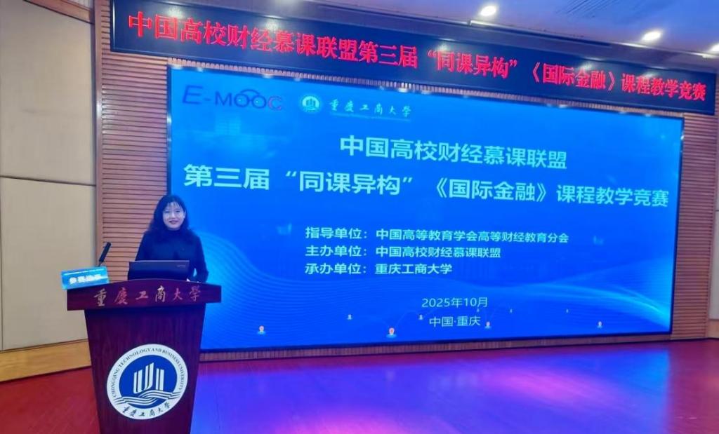 近日,中国高校财经慕课联盟第三届“同课异构”《国际金融》课程教学竞赛在重庆工商大学成功举办。经过激烈角逐,金融学院教师王贺凭借扎实的专业功底、精湛的教学技艺和出色的现场表现,荣获本次竞赛二等奖。