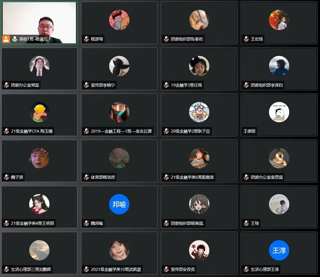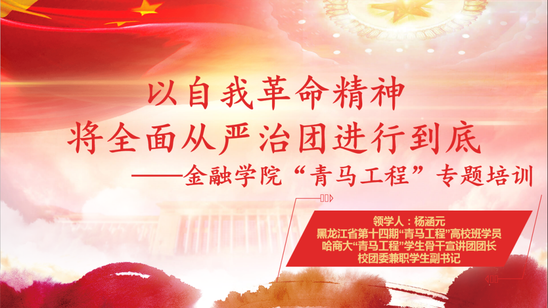 为深入贯彻落实共青团的十八届六中全会精神,以自我革命,将全面从严治团进行到底,金融学院团委于2022年3月20日举行“青马工程”专题培训会,会议由黑龙江省第十四期“青马工程”高校1班学员、校“青马工程”学生骨干宣讲团团长、校团委兼职学生副书记杨涵元组织领学,向金融学院全体学生团干部传达全会主要内容及精神。参会人员包括金融学院团委学生会全体成员、各班班长和团支部书记。
