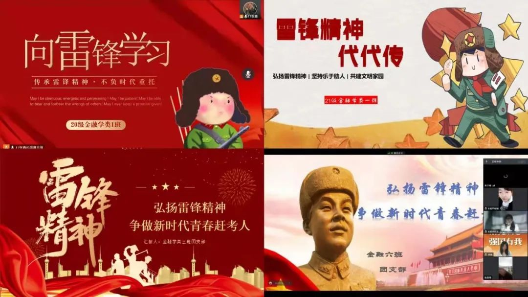 为全面贯彻习近平新时代中国特色社会主义思想和党的十九届六中全会精神,深入落实习近平总书记关于青年工作的重要思想,进一步引领广大青年学生深入践行社会主义核心价值观,树立良好的道德文明风尚,弘扬雷锋精神,培育良好学风、校风,构建和谐的校园环境,以昂扬的精神状态和接续奋斗姿态喜迎党的二十大、庆祝建团100周年、献礼建校70周年。金融学院团委积极响应校团委号召,以“学雷锋纪念日”为契机,于2022年3月开展了以“弘扬雷锋精神,争做新时代青春赶考人”为主题的系列活动。本次活动分为四种形式:主题团日活动、故事分享会、征文比赛、主题学习座谈会。