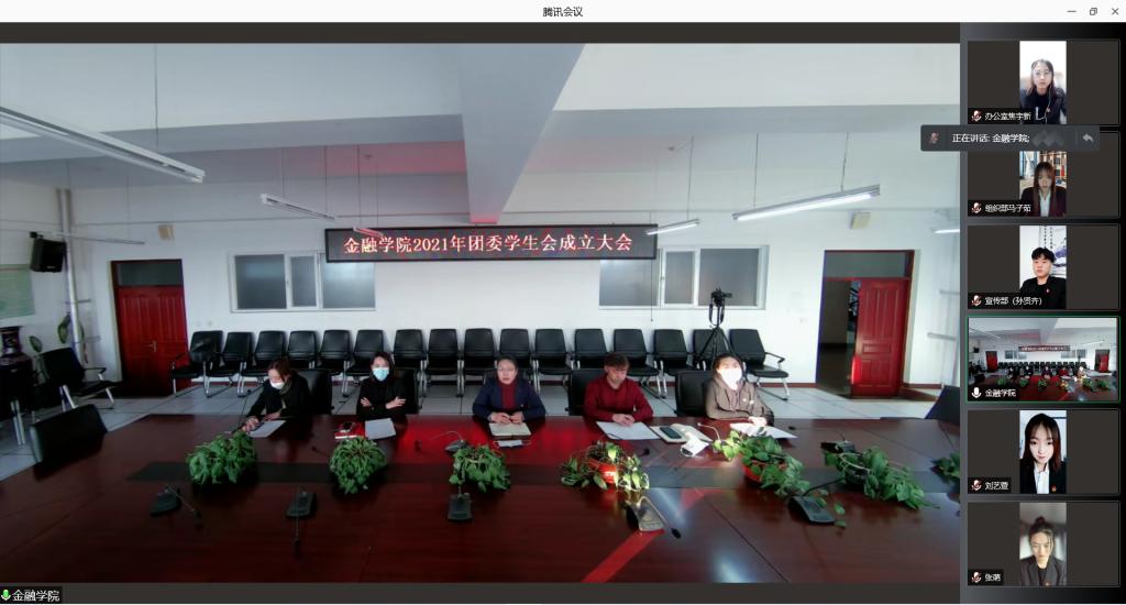 12月8日下午,金融学院于线上召开了2021年团委学生会成立大会。金融学院党委书记王春华、党委副书记董兵权、学院团委副书记罗楠、学院团委副书记衣弘扬、辅导员于鸿翠、姜禹奇老师,及院团委学生会各部门负责人出席了大会,会议由罗楠老师主持。