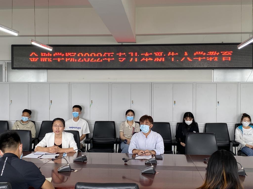 8月21日上午10点,金融学院在主楼0708会议室召开了2022年专升本新生入学教育大会。学院党委书记王春华、党委副书记董兵权、辅导员王鹏老师及39名专升本新生参加了大会,会议由董兵权主持。