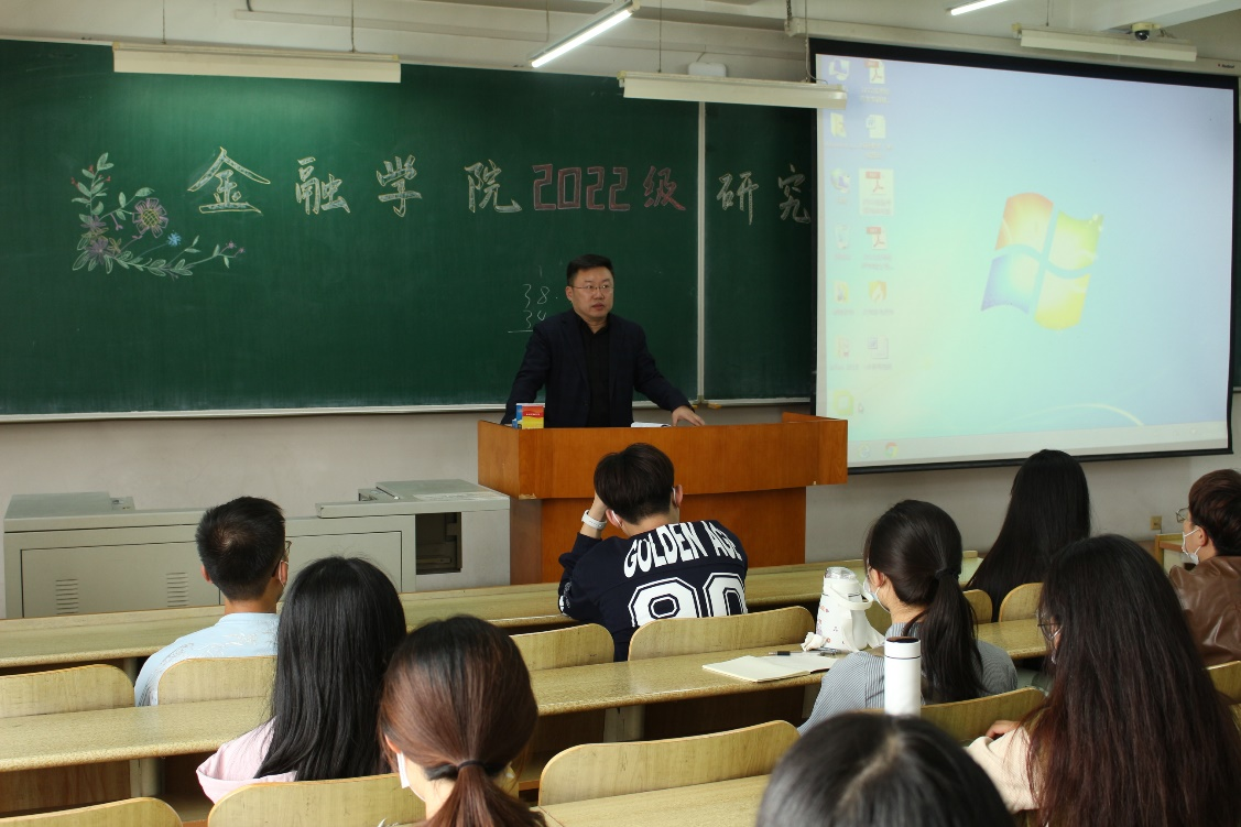 9月28日下午13时,金融学院于主楼0701教室召开了金融学院2022级研究生入学教育大会。院长姚凤阁、副院长陈敏、党委副书记董兵权、研究生辅导员马潇潇和93名研究生新生参加了本次大会,会议由董兵权主持。