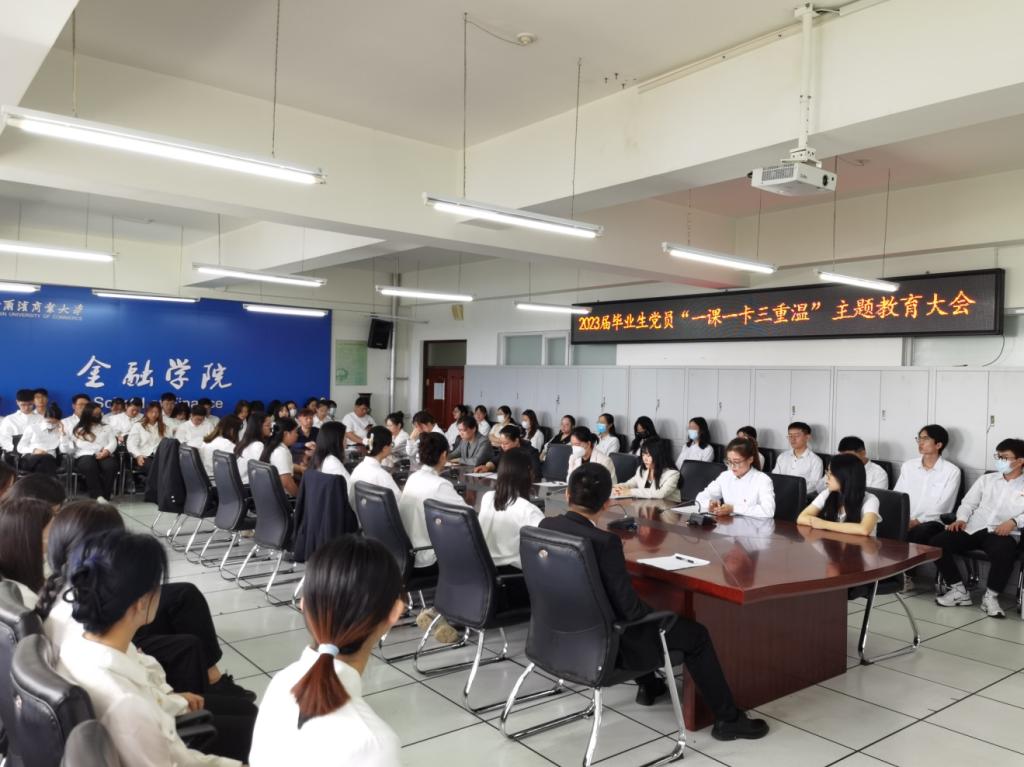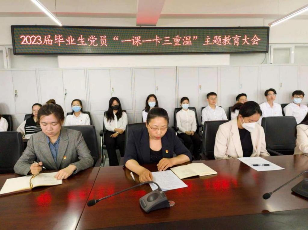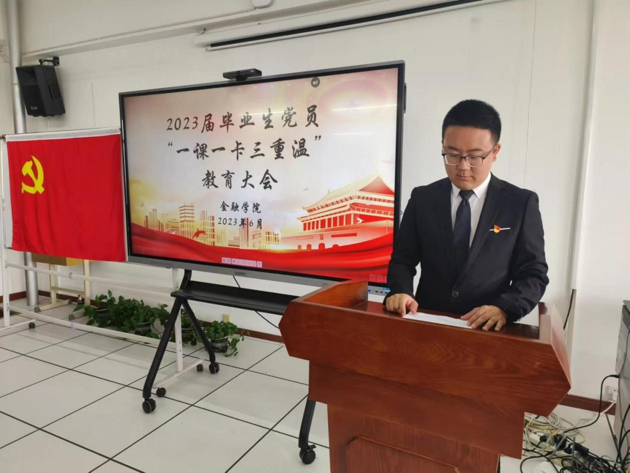 为深入贯彻落实习近平新时代中国特色社会主义思想,深化毕业生党员的思想政治意识,强化毕业生党员责任意识,教育引导毕业生党员坚定理想信念,激发毕业生党员的使命担当, 6月6日上午,金融学院党委召开了2023 届毕业生党员“一课一卡三重温”主题教育大会。学院党委书记王春华、院团委书记罗楠、辅导员王鹏、吴迪、张璇以及2023届全体毕业生党员参加了大会。会议由学院党委副书记董兵权主持。