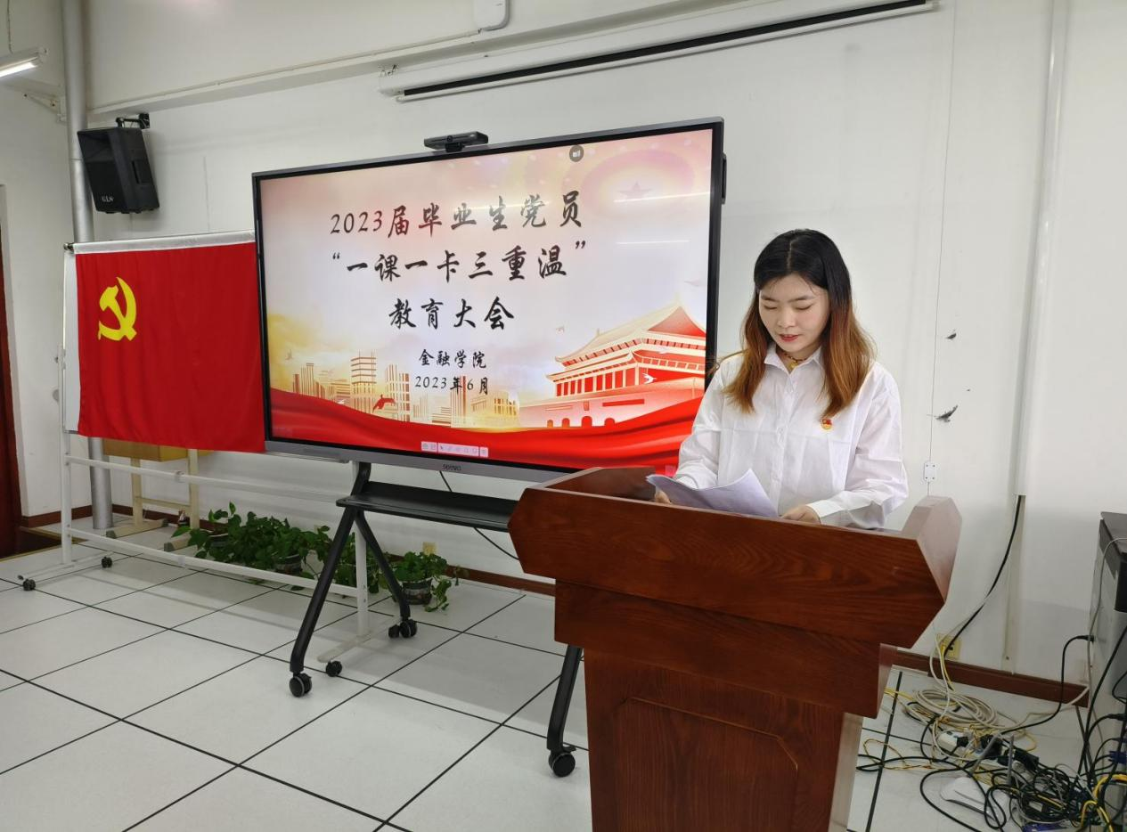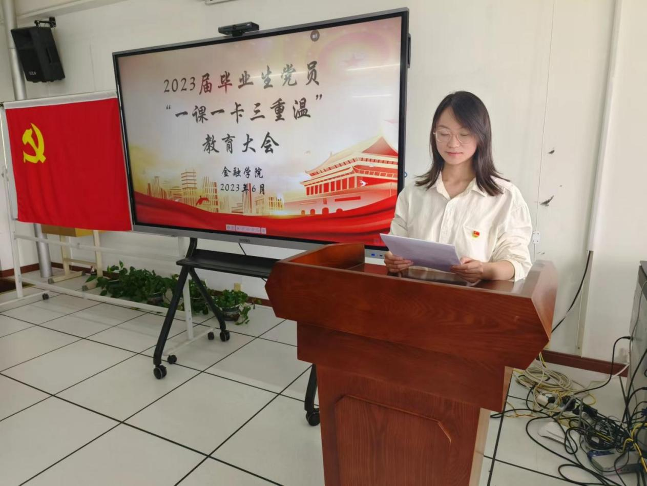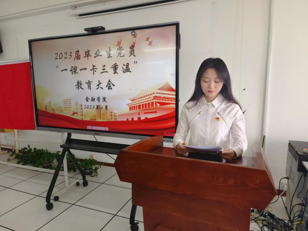 为深入贯彻落实习近平新时代中国特色社会主义思想,深化毕业生党员的思想政治意识,强化毕业生党员责任意识,教育引导毕业生党员坚定理想信念,激发毕业生党员的使命担当, 6月6日上午,金融学院党委召开了2023 届毕业生党员“一课一卡三重温”主题教育大会。学院党委书记王春华、院团委书记罗楠、辅导员王鹏、吴迪、张璇以及2023届全体毕业生党员参加了大会。会议由学院党委副书记董兵权主持。