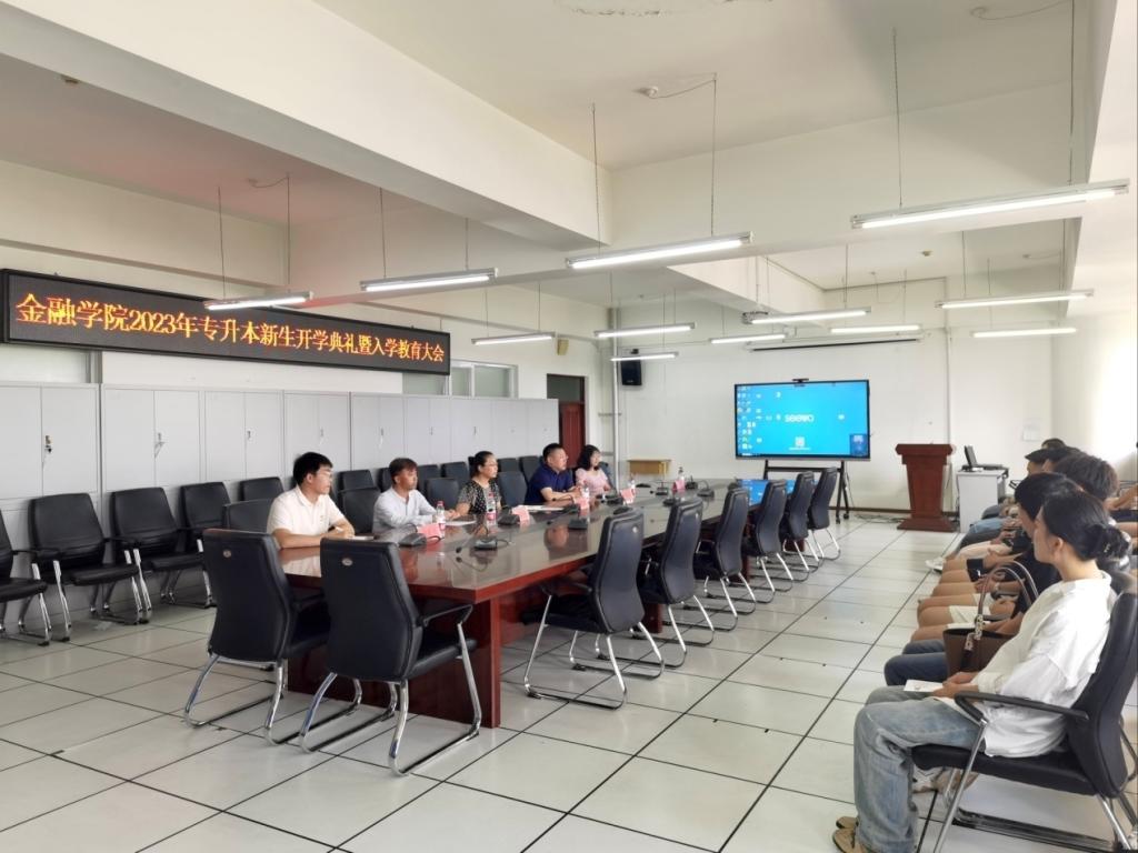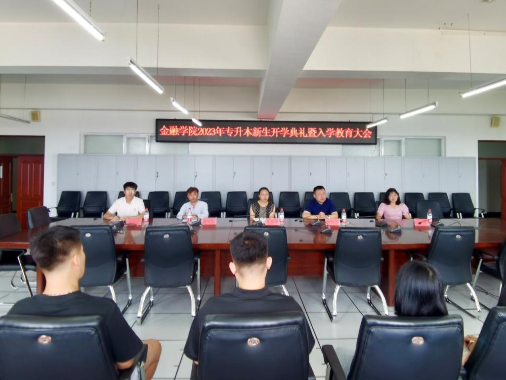 2023年8月19日下午,金融学院于主楼0708会议室召开2023年专升本新生开学典礼暨入学教育大会。金融学院党委书记王春华、院长姚凤阁、院党委副书记董兵权、金融学教研室副主任王贺、2021级辅导员姜禹奇老师及36名专升本新生出席了会议,会议由董兵权主持。