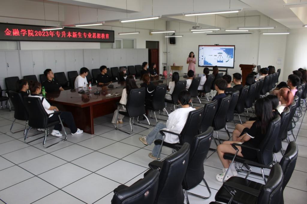 典礼结束后,金融学教研室副主任王贺老师为全体专升本新生进行了专业思想教育。王贺老师结合金融学科的发展趋势,详细讲授了金融学的专业领域的相关知识点,介绍了金融学课程规划,帮助专升本新生初步感受到了金融学专业的学科优势,使学生们收获颇丰。
