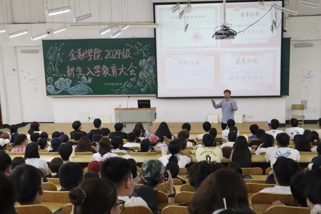 9月2日,金融学院在A区四号楼4107教室召开2024级新生入学教育大会。2024级全体新生参加本次大会,入学教育大会由金融学院党委副书记董兵权主持。