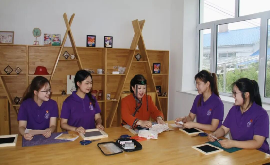 在非遗传承人陈玥指导下用桦树皮雕刻图腾,在东方第一村“赫哲族村”制作鱼皮冰箱贴,听非遗传承人莫代荣介绍缀满骨饰的皮袍……卫国戍边服务团深度参与北方渔猎文化的器物制作。剪裁鱼皮成艺,是赫哲族赋予鱼皮艺术生命;柔韧烙烫桦皮,是鄂伦春族与山林对话的密码;狍皮三十鞣制,是达斡尔族物尽其用的智慧。“三皮文化”是北方少数民族在长期的生产生活实践活动中创造出的物质财富和精神财富的积淀。队员们被其沧桑历史和延续至今的精湛技艺深深震撼,深刻认识到:守护非遗就是守护民族精神的根脉。