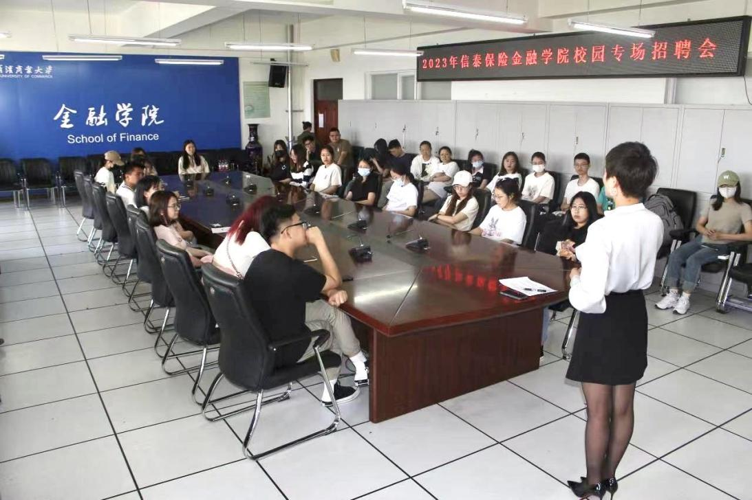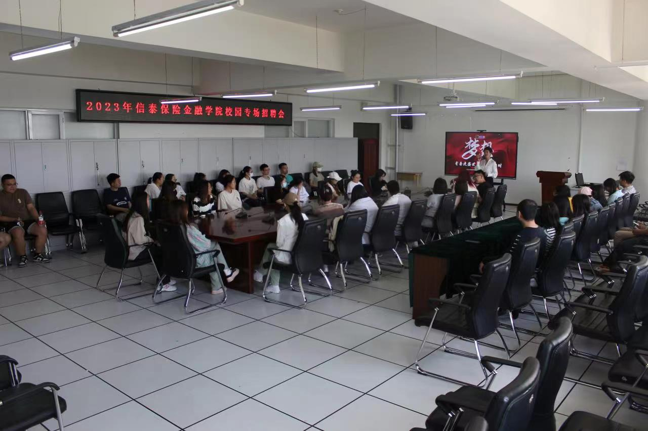 为深入贯彻落实党中央、国务院关于“稳就业”“促就业”的决策部署,积极推进学校2023届毕业生就业工作,为毕业生提供更多的就业机会。金融学院于2023年5月29日下午,在主楼0708会议室举办了2023年信泰保险校园专场招聘会。会议由金融学院党委副书记董兵权主持,辅导员吴迪老师及40余名2023届毕业生参加了招聘会。
